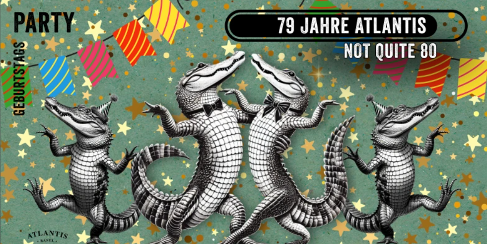 For over 75 years, Atlantis has been a social hub for music lovers, an institution of Basel's nightlife. It’s a place where generations have come together, danced, celebrated, and made history. On this evening, they will look back together, celebrate, laugh—and raise a glass to almost 80 years of life, music, and unforgettable nights. On this evening, Atlantis will be more than just a venue: it will be an experience that transcends time. Under the motto "Almost 80!", Atlantis will transform into a time machine: Dress up as a decade of your choice, whether the elegant 50s, the wild 70s, the neon-drenched 80s, or any other favorite chapter of history. Anything goes that evokes memories and brings joy.