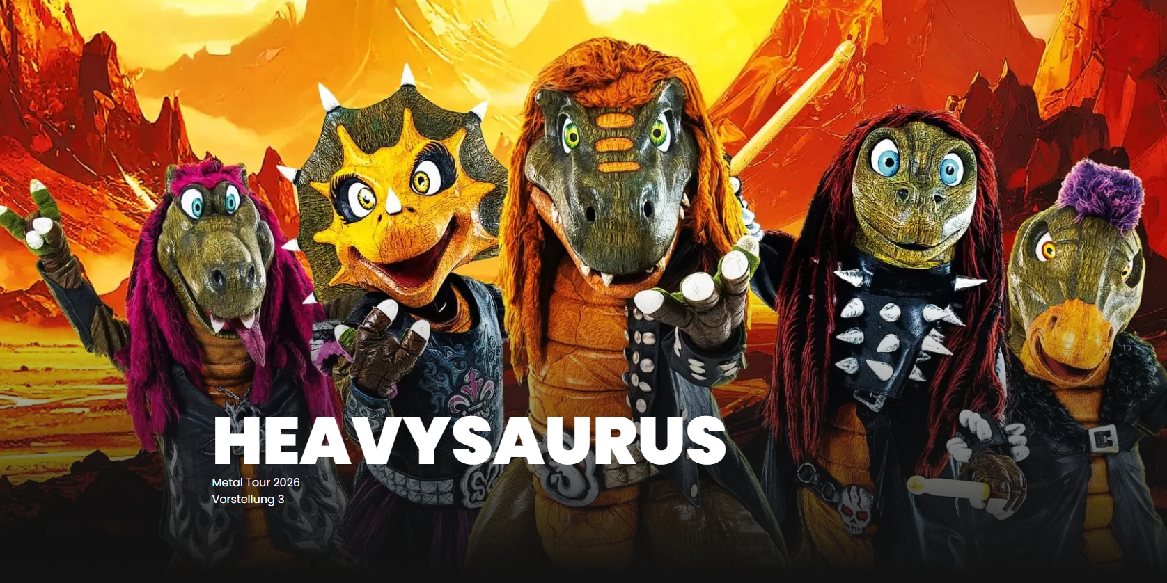 Heavysaurus concerts are spectacular: light, fog, showers of sparks, balloons and confetti, with real live music from professional musicians in dinosaur costumes and a sound that is suitable for children’s ears as well as made for rock fans. After the overwhelming success of their 2024 and 2025 tour, Heavysaurus are touring again with their upcoming album “METAL” and a new live program.