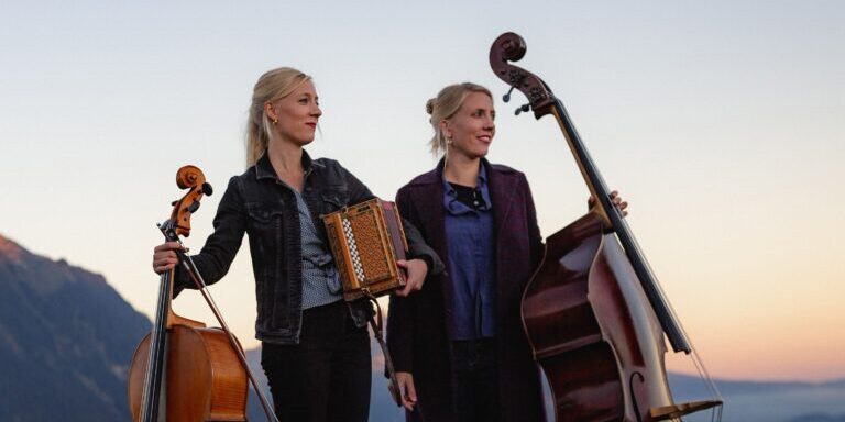 Schwyzerörgeli, cello, and double bass—the instruments are familiar yet the combination is surprising: Evelyn and Kristina Brunner switch between their instruments with playful confidence, creating their own sound world, characterized by melodies and rhythms of diverse styles, sometimes melancholic, sometimes mischievous. The two musicians from the Bernese Oberland perform at national and international festivals as well as on stages large and small, captivating audiences with their warm and engaging stage presence. Their success stems from their musical intimacy, cultivated since childhood, and an impressive ease in their playing that creates a rare depth and sensitivity. This results in their original compositions, which evoke a touching atmosphere that consistently enthralls audiences and lingers long after the final note.
